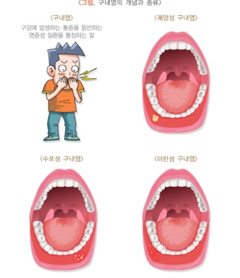 그 중에서도 질병의 경중으로 따지자면 가벼운 축에 속하긴 하지만 굉장히 신경을 쓰이게 하는 구내염에 대해 알아보려고 합니다.