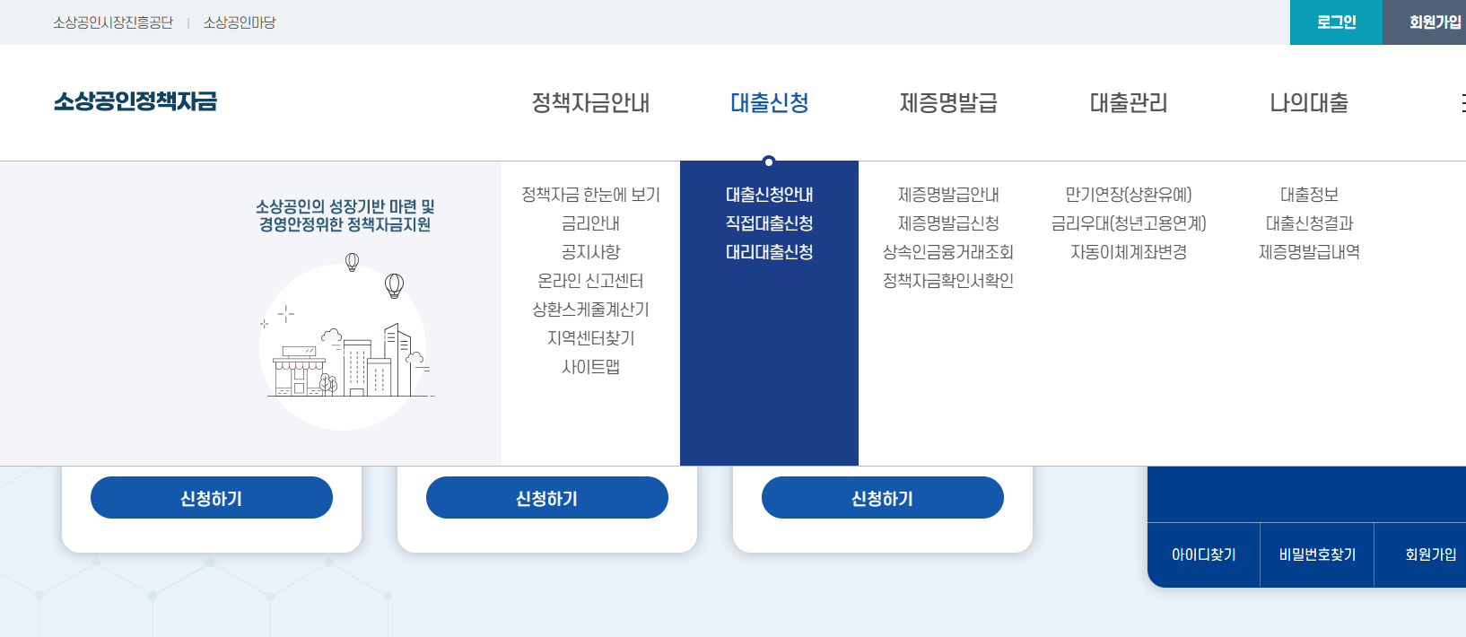 - 방식 : 각 자금명에 따라 직접과 대리신청 방법이 나뉘니 자세한 사항은 소상공인 정책자금 홈페이지를 참고해주세요.