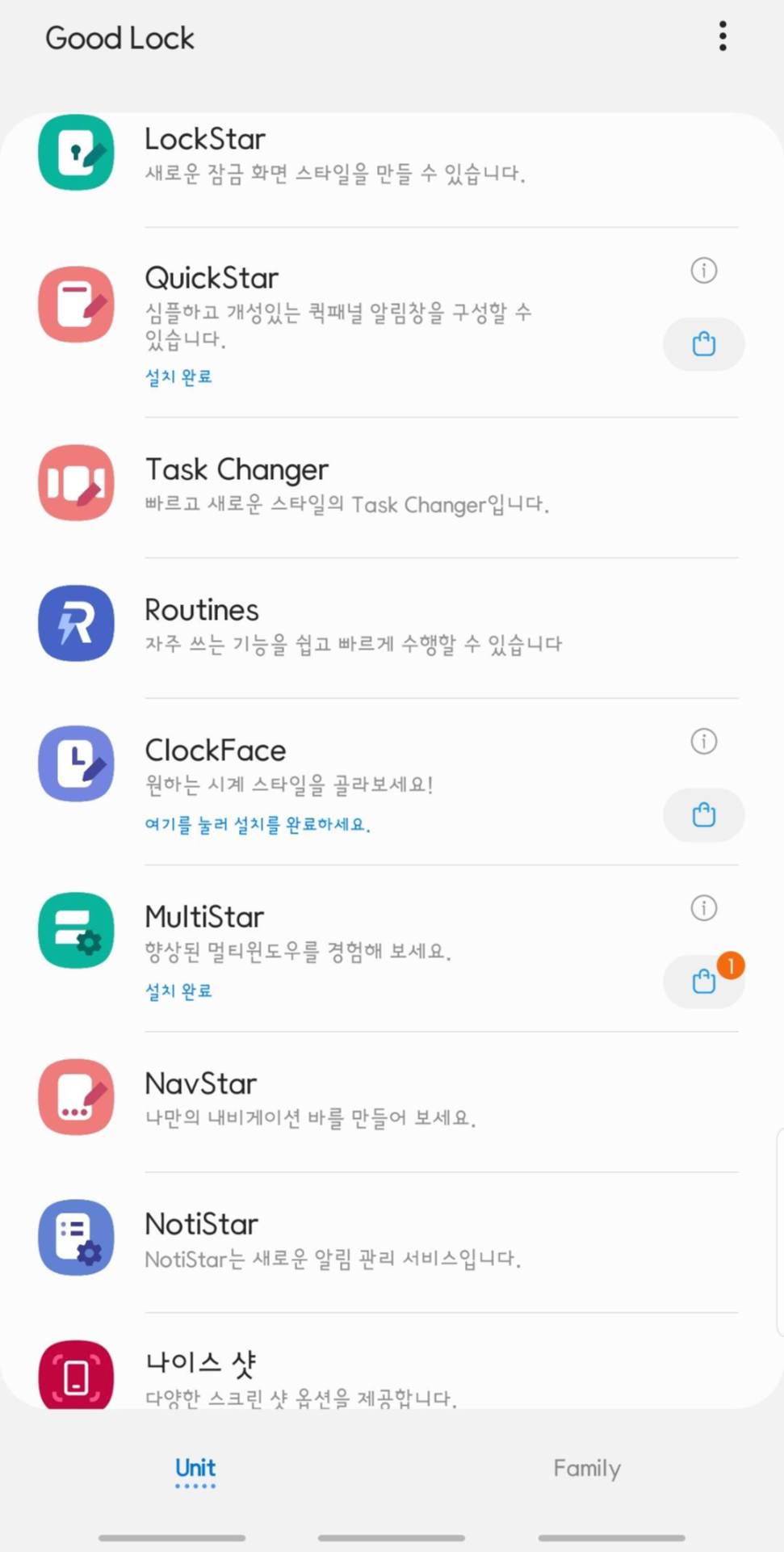 어플을 설치를 하시면 이렇게 여러개의 또 다른 어플들이 모여있는 것을 보실 수 있습니다. 이 안에 있는 어플들은 다시 한번 다운로드를 필요로하고, 필요한 부분을 누르시면 자동으로 갤럭시 스토어에서의 다운로드로 연결이 됩니다. 제가 잘 사용하고 있는 퀵스타, 태스크 체인저, 네브스타의 기능을 알려드리겠습니다!